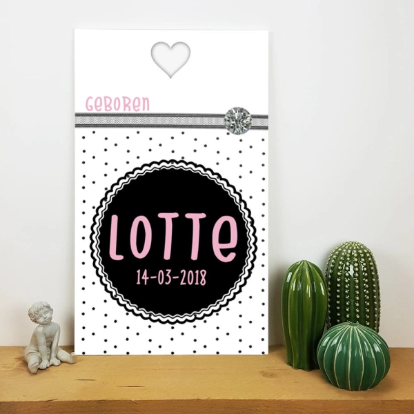 Geboortebord met naam en datum diamant