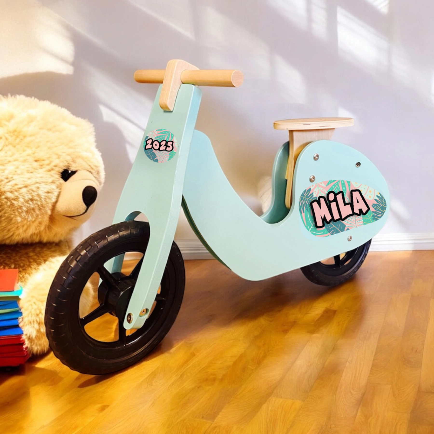 Materiaal: Hout Velgen: Kunststof velgen Wielen: Soft touch kunststof Afmetingen: Lengte: 75 cm Breedte: 27 cm Hoogte: 50 cm Hoogte zitting: 38 - 40 cm Andere Kenmerken: Montage handleiding: ja Verstelbare zitting: Ja Maximum gewicht: 30 kg