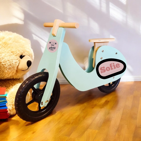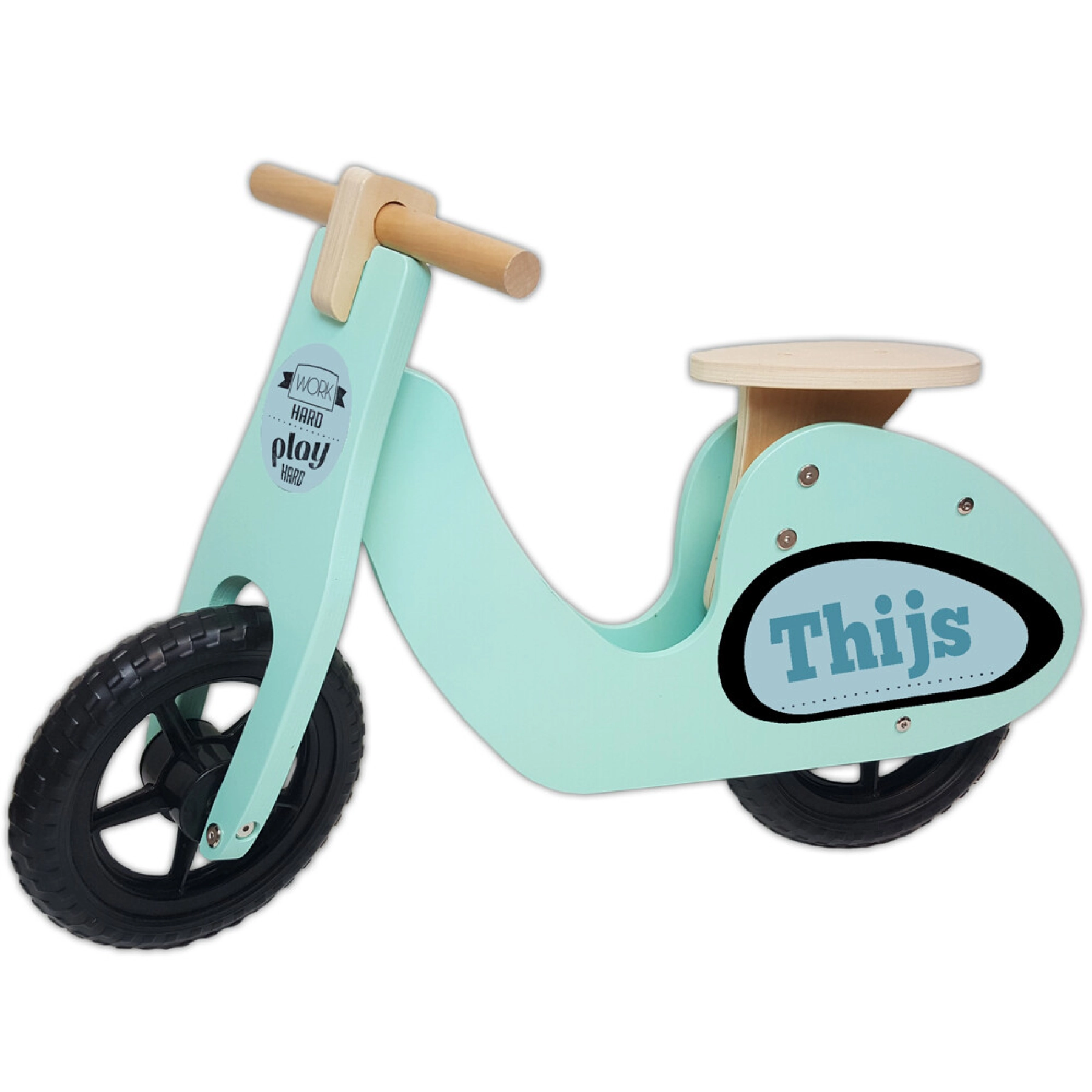 Super gezellige en kleurrijke loopscooter met naam van het kindje.