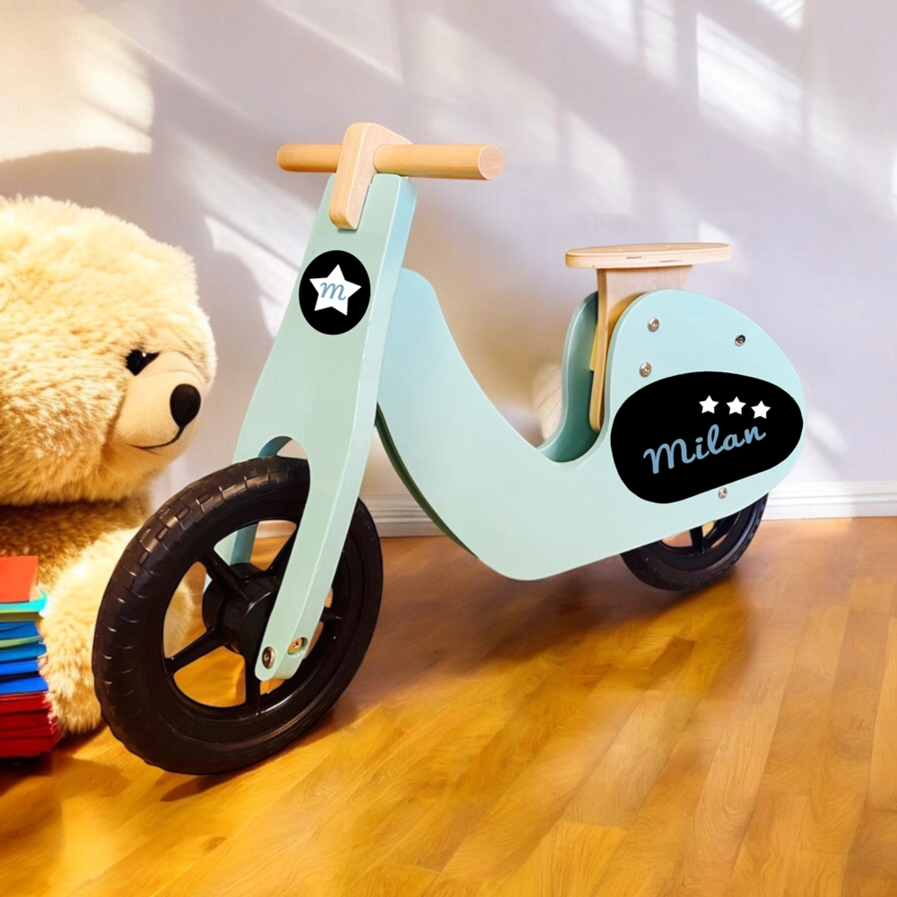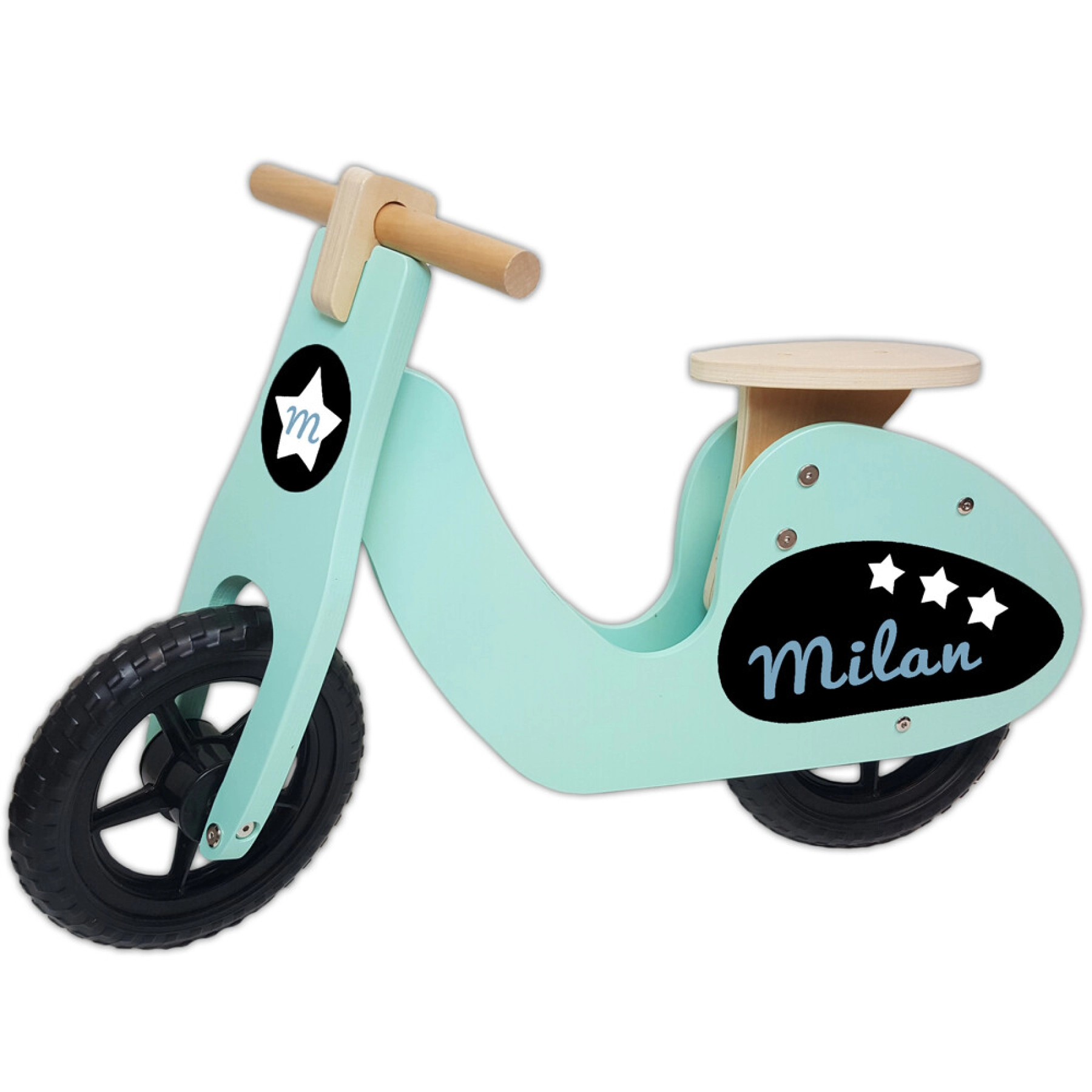 Een super gave loopscooter met naamsvermelding van het kindje.