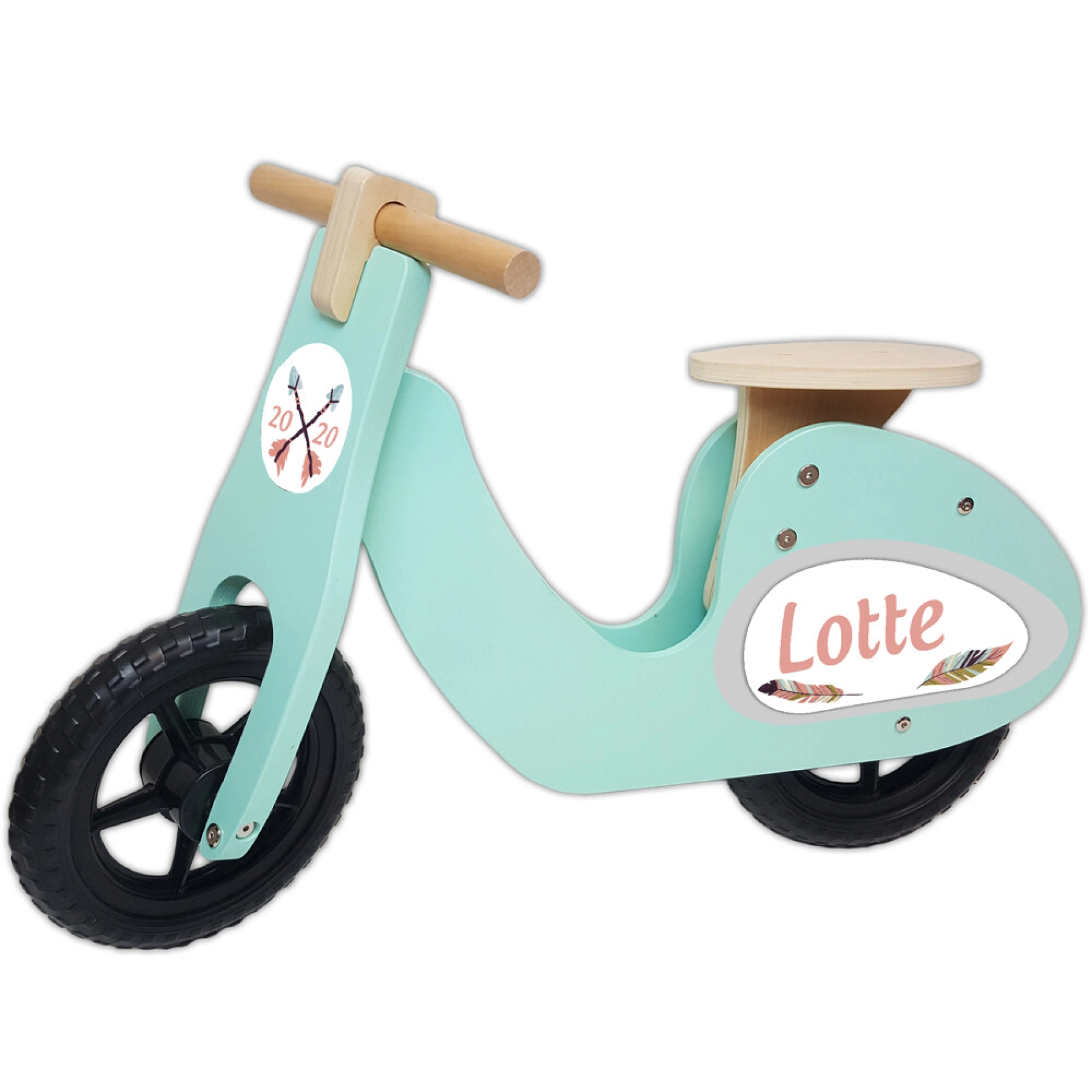 Materiaal: Hout Velgen: Kunststof velgen Wielen: Soft touch kunststof Afmetingen: Lengte: 75 cm Breedte: 27 cm Hoogte: 50 cm Hoogte zitting: 38 - 40 cm Andere Kenmerken: Montage handleiding: ja Verstelbare zitting: Ja Maximum gewicht: 30 kg